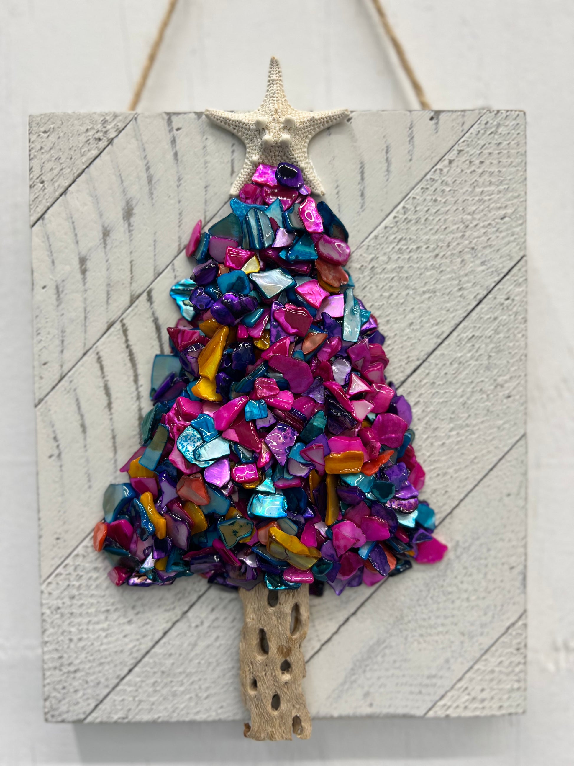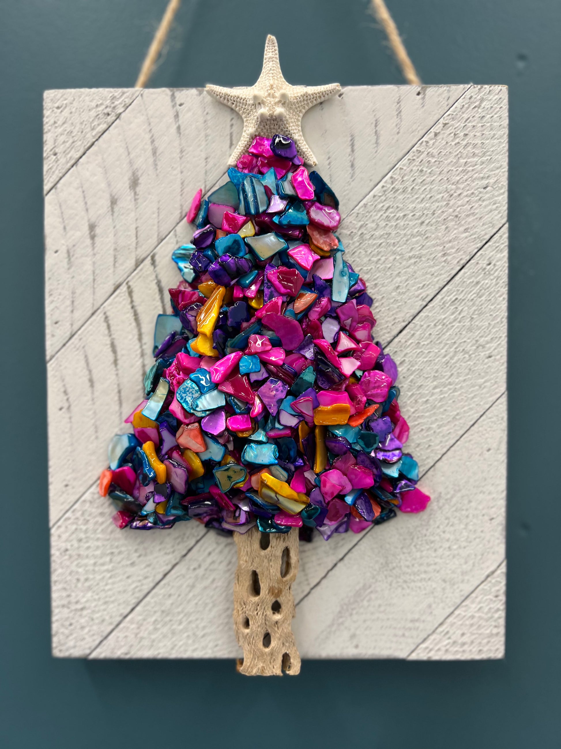 Multi Colored Crushed Seashell Holiday Tree Wall Art